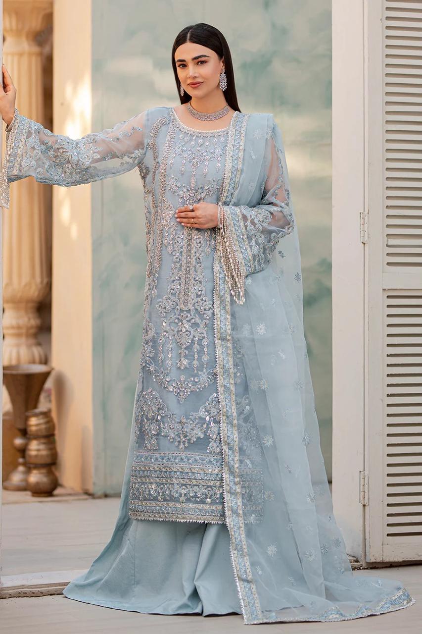 This hand-embellished aqua dress is perfect for formal occasions. With its intricate details and elegant design, it will surely make you stand out in any event. Made from high-quality materials, it offers both comfort and style. Elevate your formal wear game with this stunning dress.