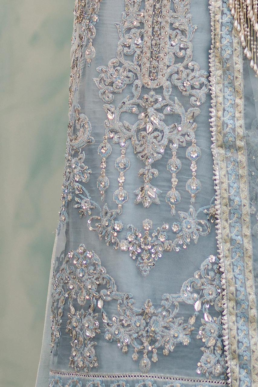 Embroidered hand embellished organza back Border.