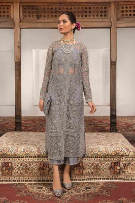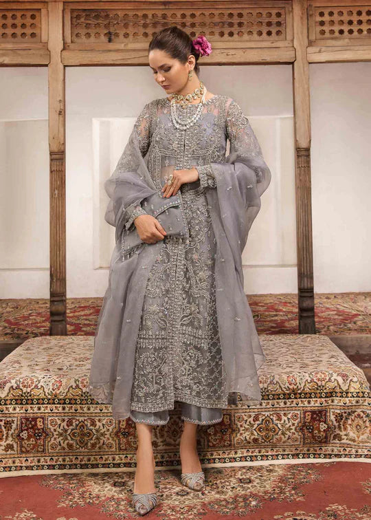 This hand-embellished attire is expertly designed with a seamless fusion of traditional aesthetics and modern style. The dress' serene and mellow shade of grey exudes an aura of understated elegance that will enchant. The hand embellished attire is a genuine work of art, adorned with elaborate and delicate embellishments precisely handcrafted by expert artisans.