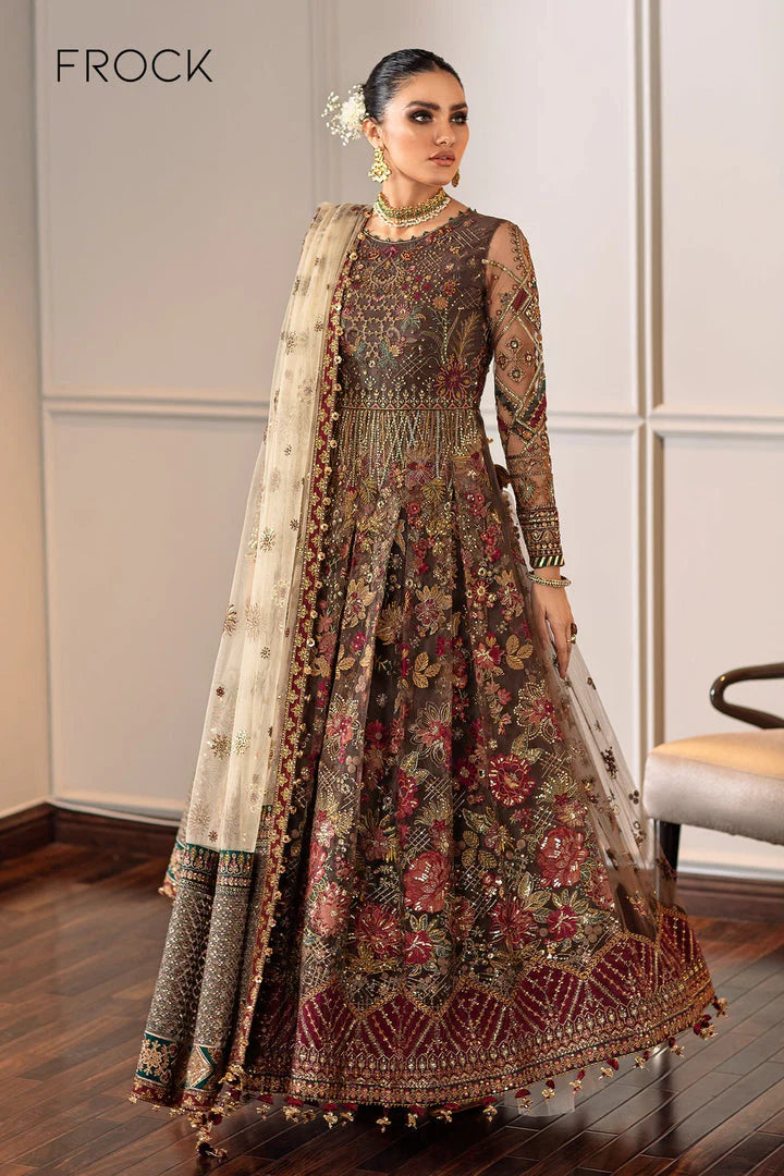 A delicately crafted 3-piece exquisite net ensemble to make you stand out. The ravishing embroidery with intricated floral and floret patterns upholds the luxury this dress offers. Embroidery runs through shirt and dupatta, lightening up the vista. The dyed silk trouser completes the outfit. So, you can go for unstitched or stitched. Ultimately, you get to decide between a shirt or a gown, if you're vouching for stitched option.