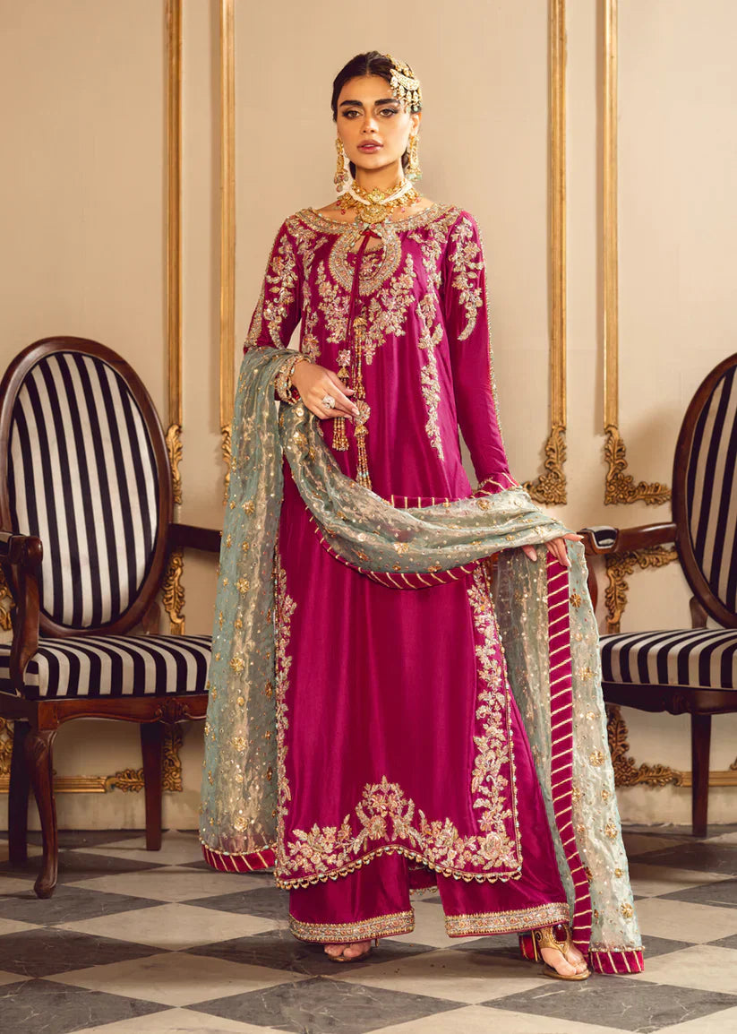 Melodic Tassels a Symphony of Opulence is crafted with meticulous care from pure raw silk, the shirt and pants radiate a lustrous sheen and boast a luxurious texture that enhances the overall allure of the ensemble. Melodic Tassels, with its Aqua Green dupatta, invites you to embrace the enchantment of color and texture. It is an ode to individuality and style, where every element comes together to form a harmonious composition, a melody that resonates with the modern spirit while paying homage to the richness of tradition.