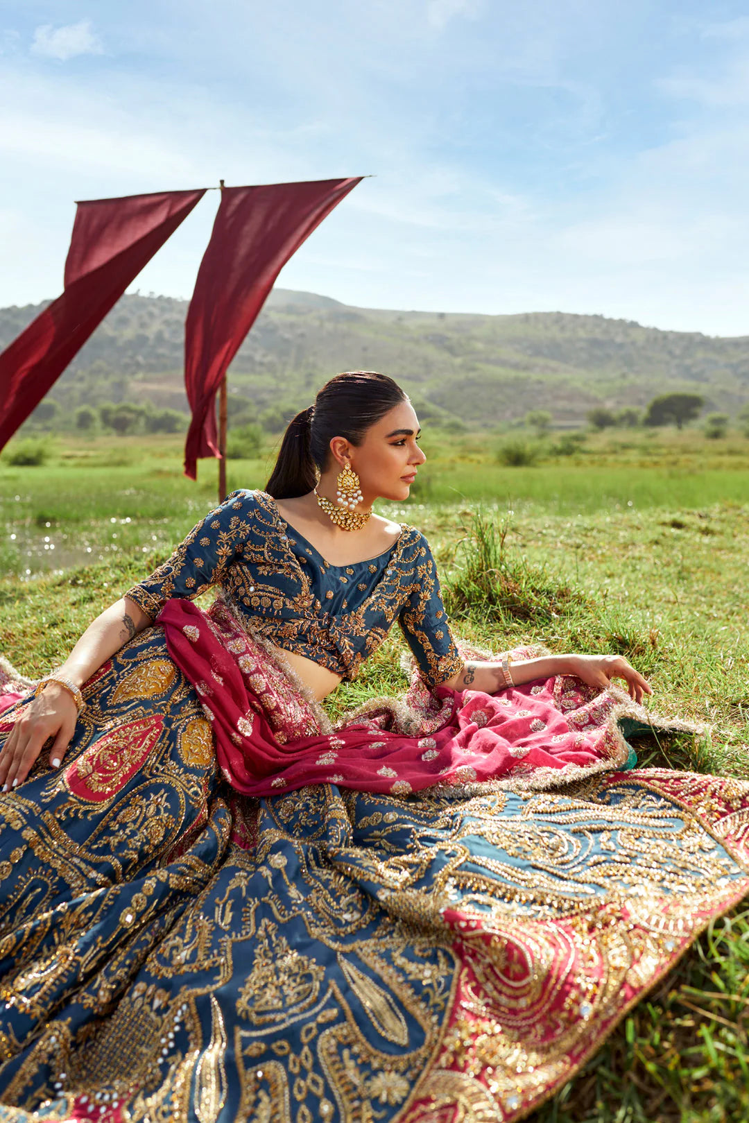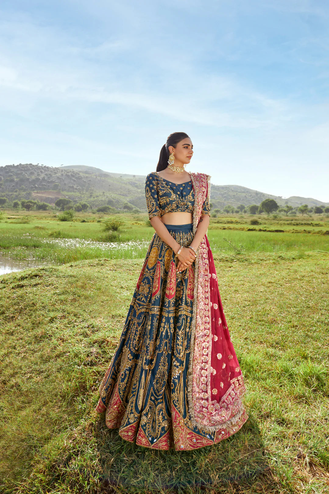 EMBROIDERED ORGANZA DUPATTA WITH HANDEMBELLISHED PALLU PATTI.
