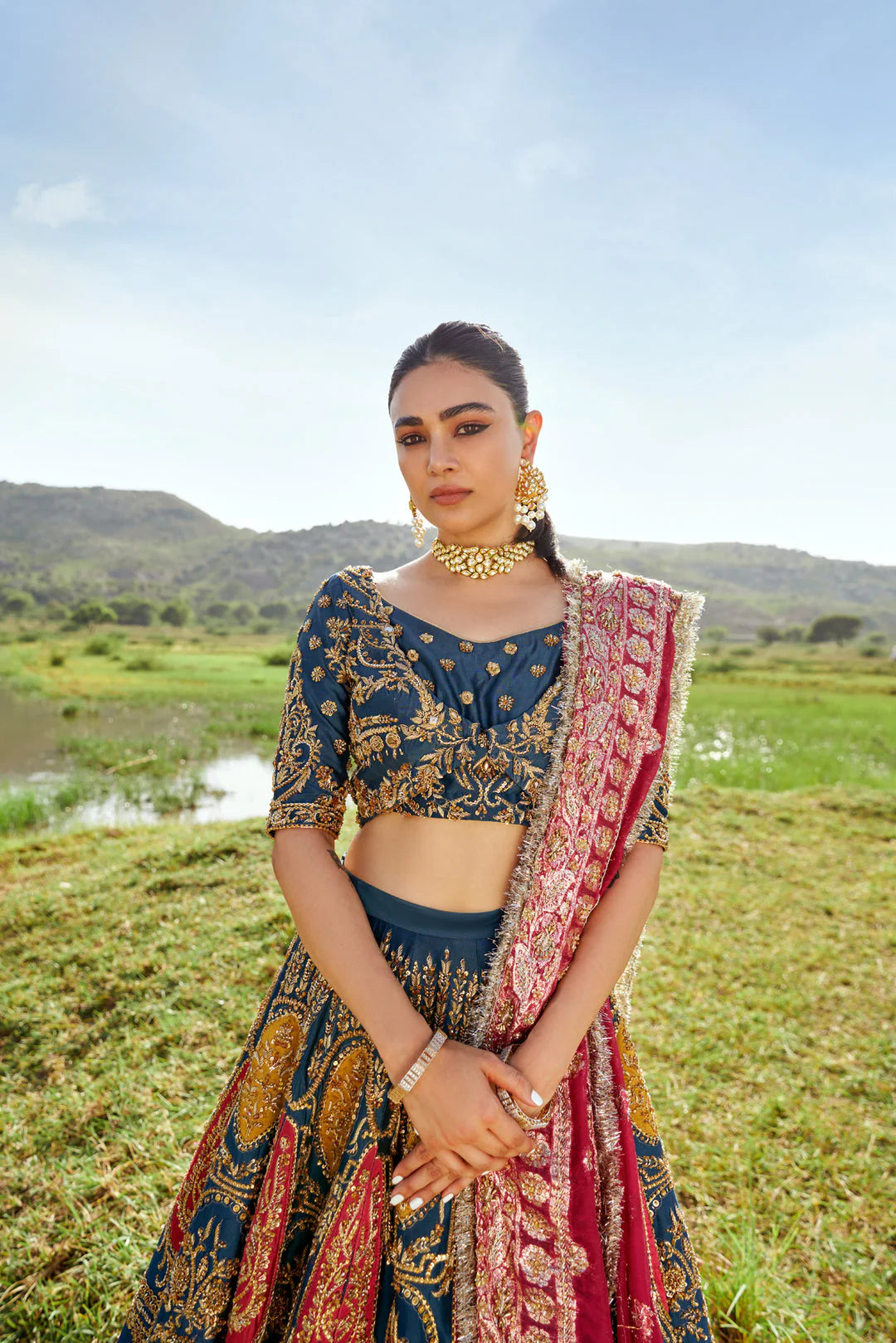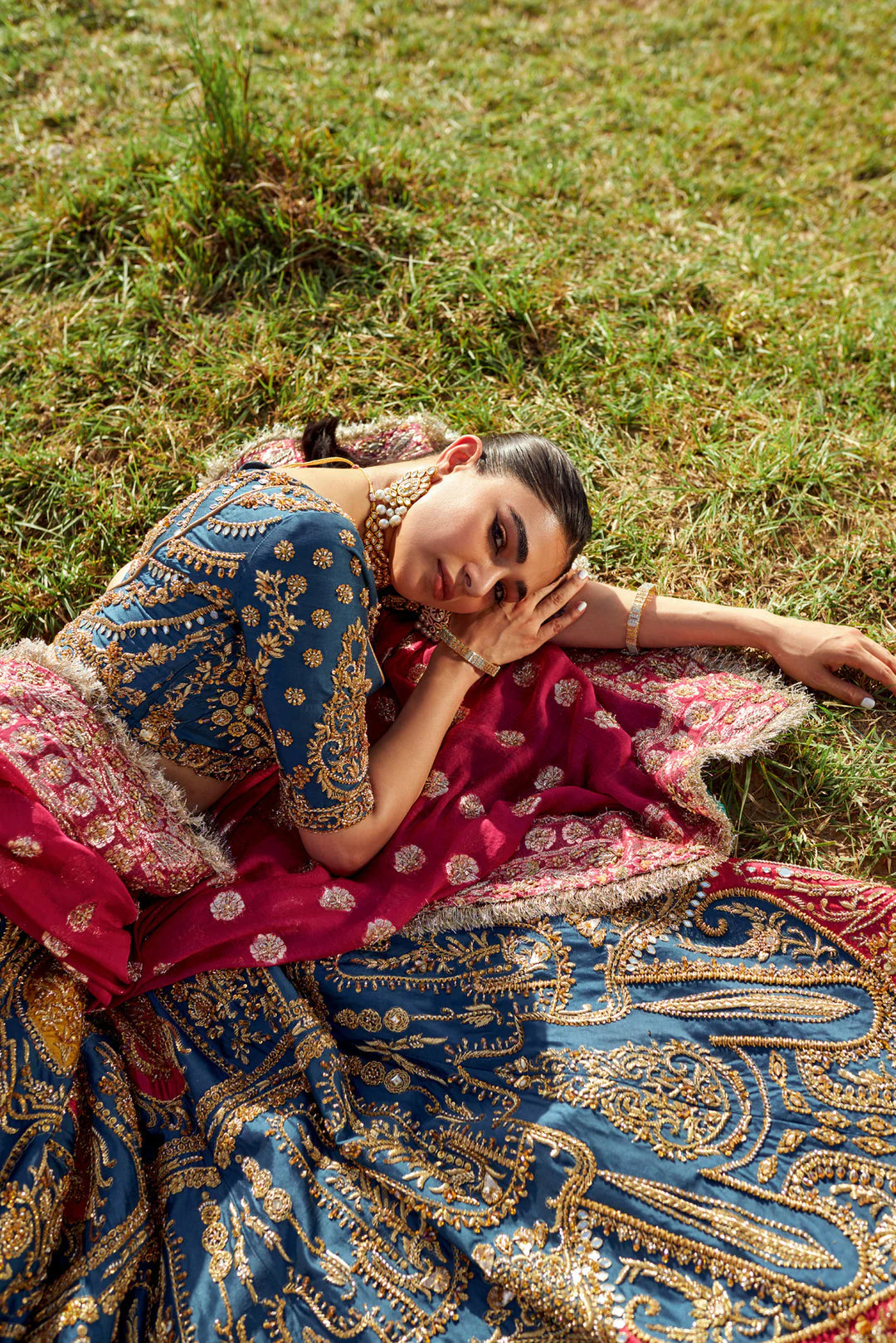EMBROIDERED AND HANDEMBELLISHED BLOUSE ON KATTAN-SILK.