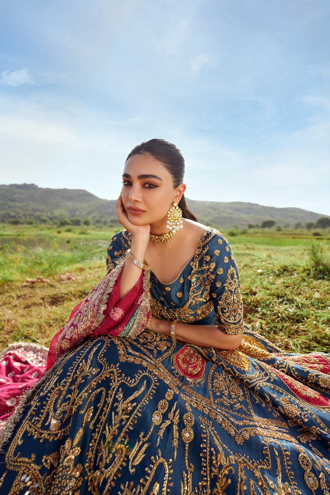 EMBROIDERED AND HANDEMBELLISHED SLEEVES ON KATTAN-SILK.